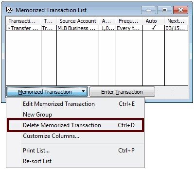 Step 3. Now click on the drop-down menu and choose ‘Delete Memorized transaction’. And at last, click on OK when you get the confirmation window.